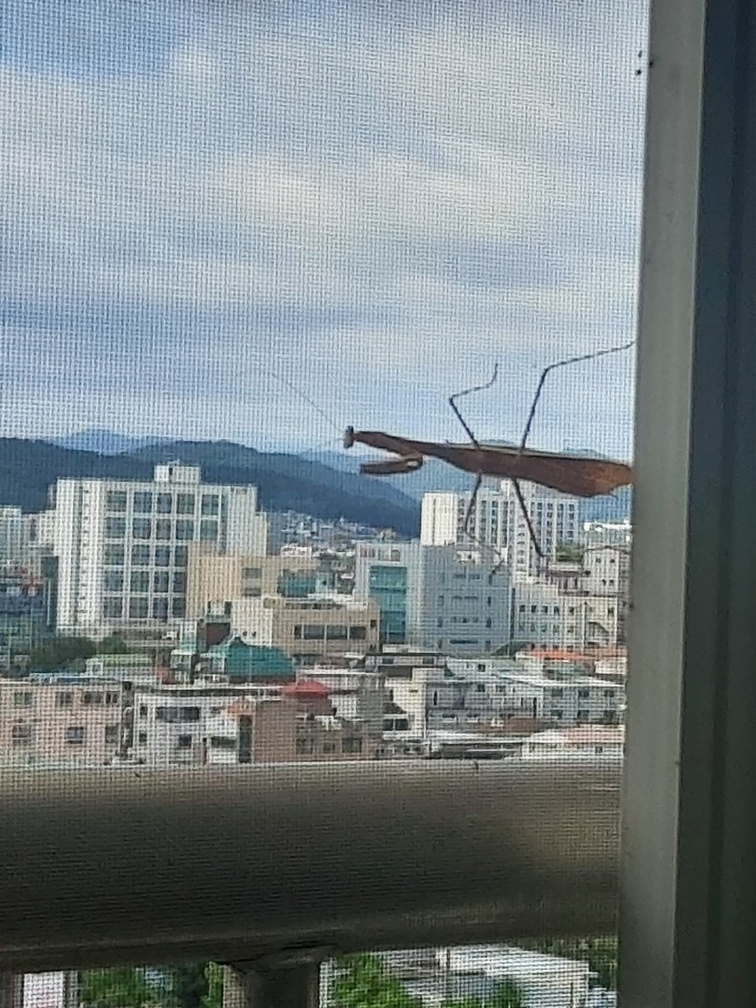 이 높은곳까지 사마귀가 올라오다니