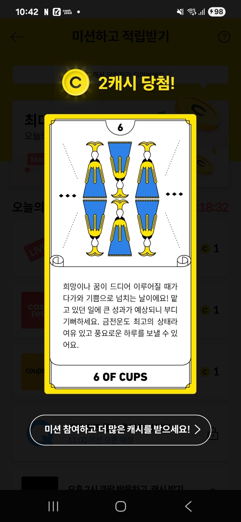 캐시슬라이드 오늘의 미션타로