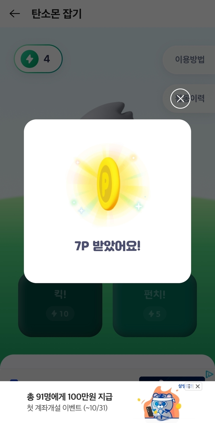 OK캐시백 탄소몬 잡았더니 7P를