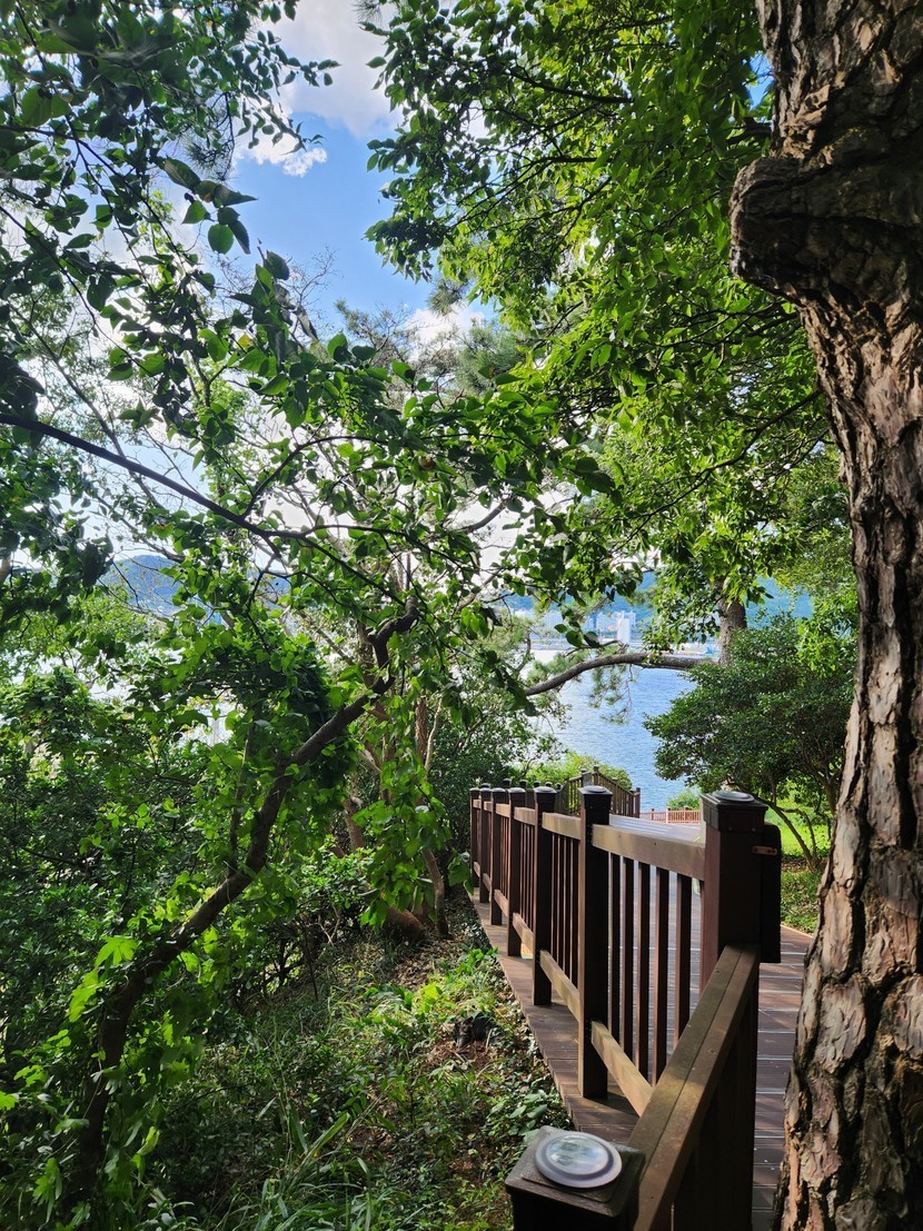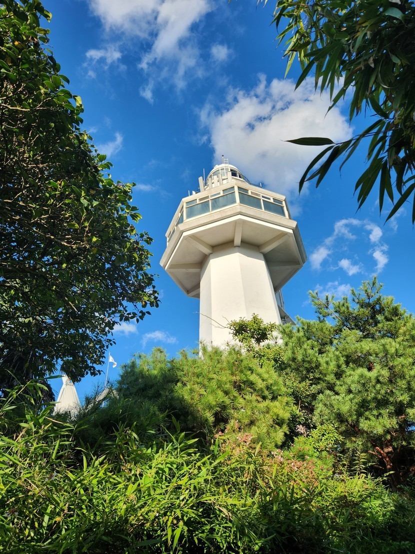 여수 오동도 등대위 하얀구름 푸른숲