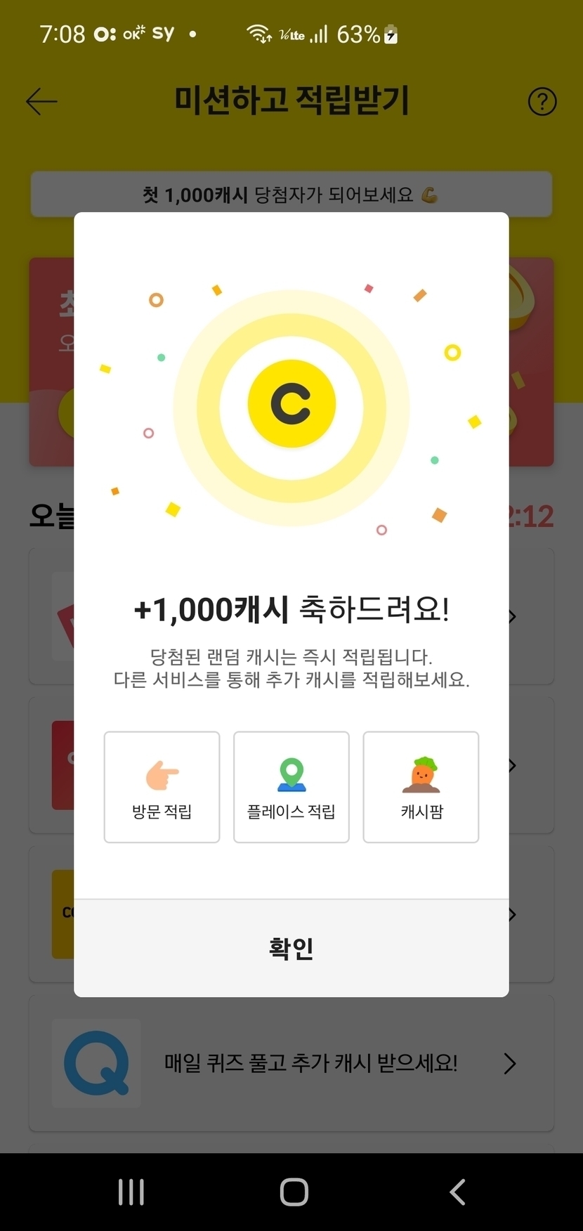미션에서 1000캐시도 주네요