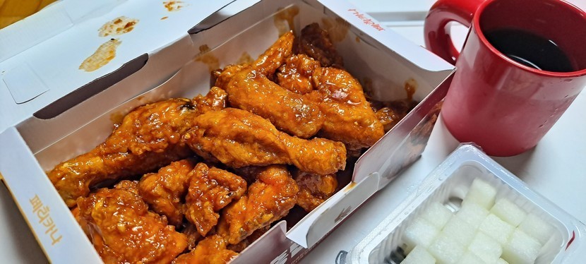 양념 치킨.