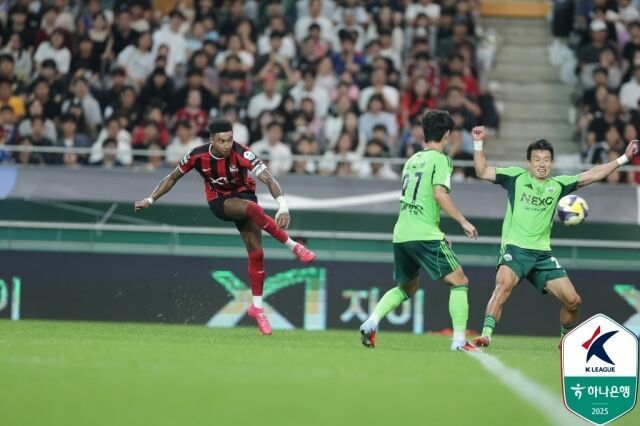 서울은 전반 23분에 다시 찬스를 잡았다. 왼쪽 측면에서 김진수가 크로스를 올렸고 이를 정승원이 원터치 슈팅으로 가져갔지만 약하게 맞으면서 송범근이 잡아냈다.