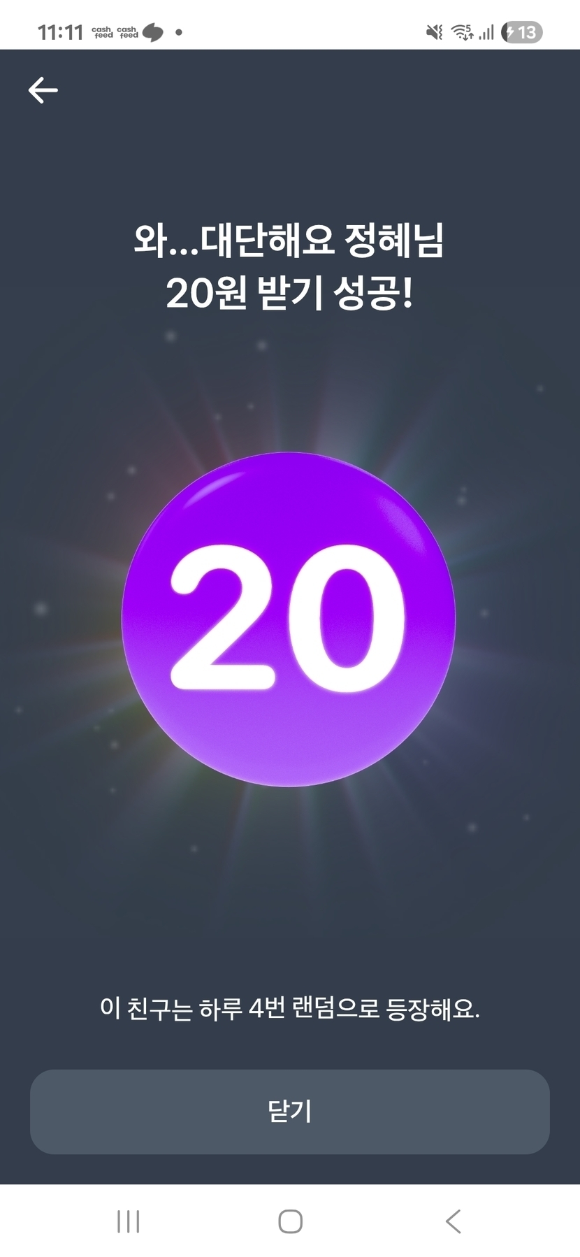 25.10.01 429 읽음 캐시아웃 / 캐시아웃 딸기맘 (답방갑니다) 구독하기 110 101 콘텐츠의 수익 14 첫날 캐시아운 신청 ㅎㅎ 뿌듯하고 캐친님들 감사합니다 ❤️토스 20원 잡기 2번성공 ㅎㅎ 이런일도 있네요^^ 101 0 / 300 입력