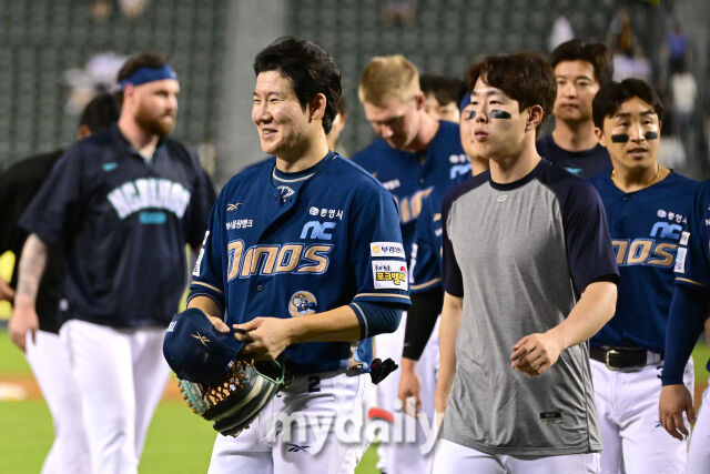 NC 다이노스 박민우는 6일 대구 삼성라이온즈파크에서 열리는 2025 신한은행 SOL Bank KBO리그 포스트시즌 와일드카드(WC) 결정전 1차전 삼성 라이온즈와 원정 맞대결에 앞서 후배들을 응원했다.