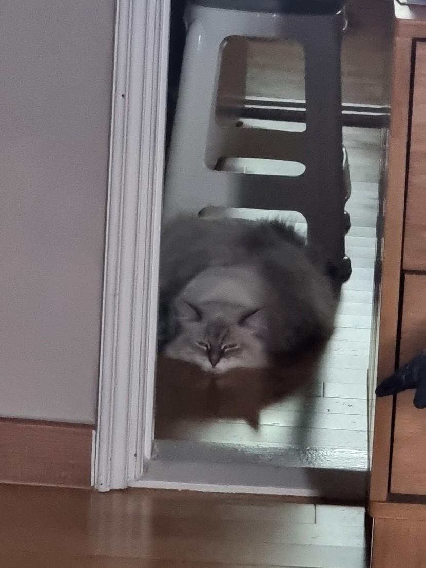 화장실앞에서 자는 복순이