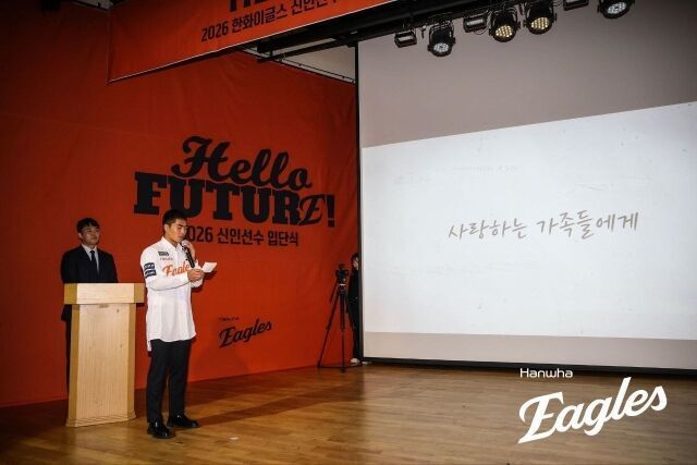 "앞으로 꿀잠 주무시라" 가족 향한 구단의 특급 배려…한화, 2026 신인 선수 입단식서 특별한 추억 선사