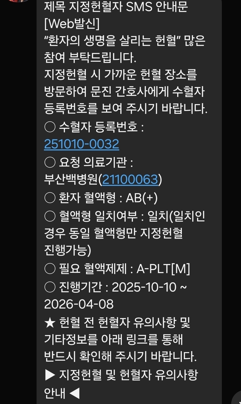 ○ 수혈자 등록번호 : 251010-0032