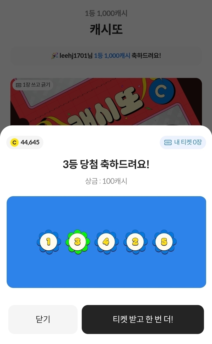캐시또 3등 당첨~~~! 🥳🥳🥳