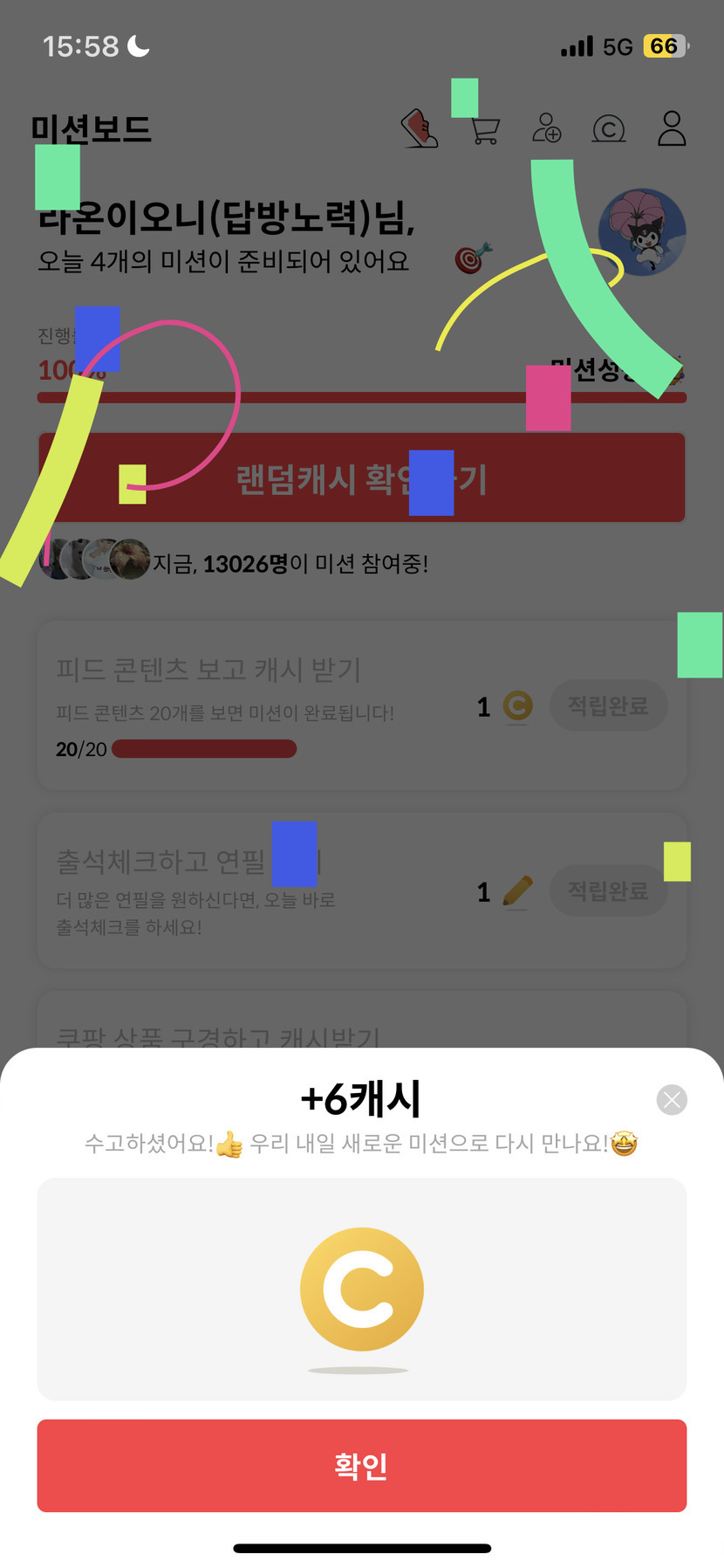 미션완료 6캐시