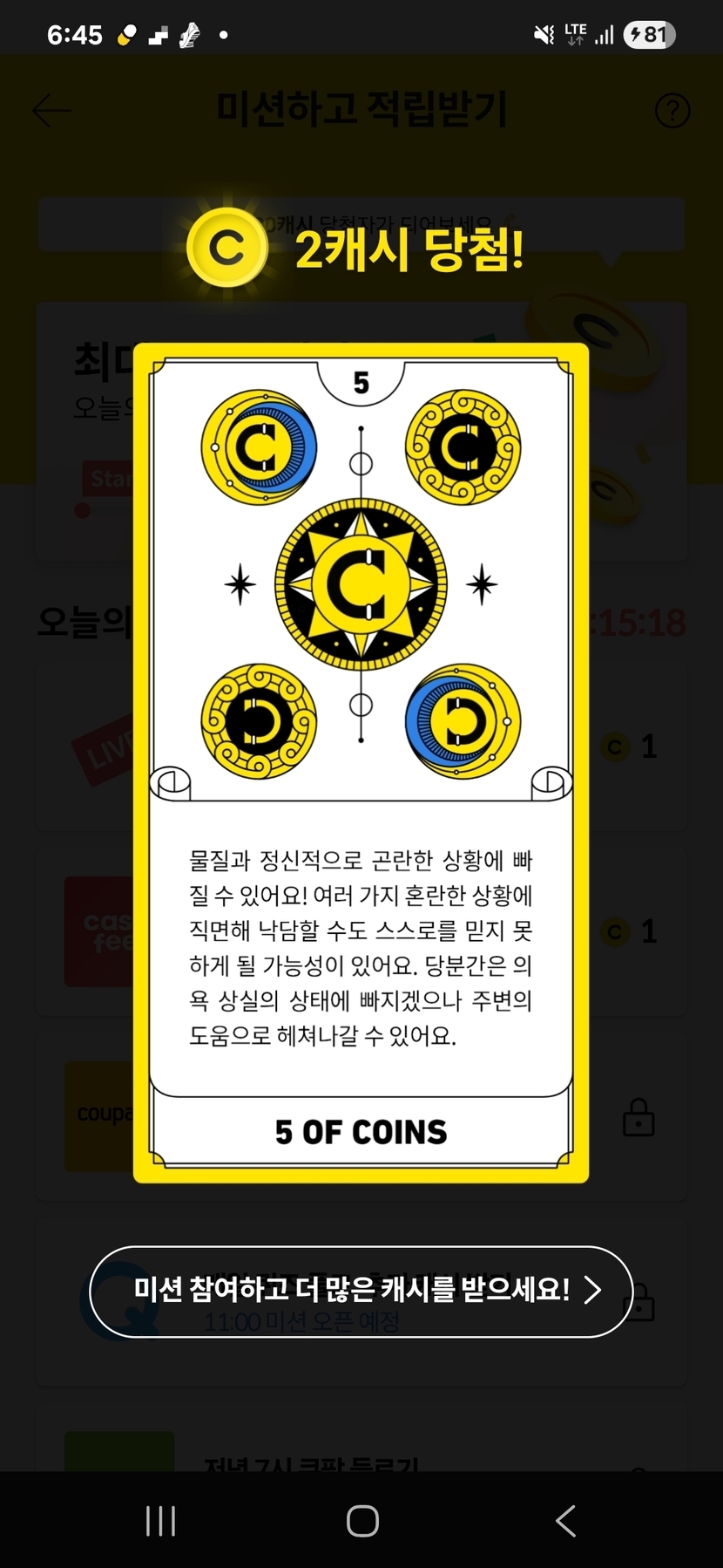 캐시슬라이드 오늘의 미션타로