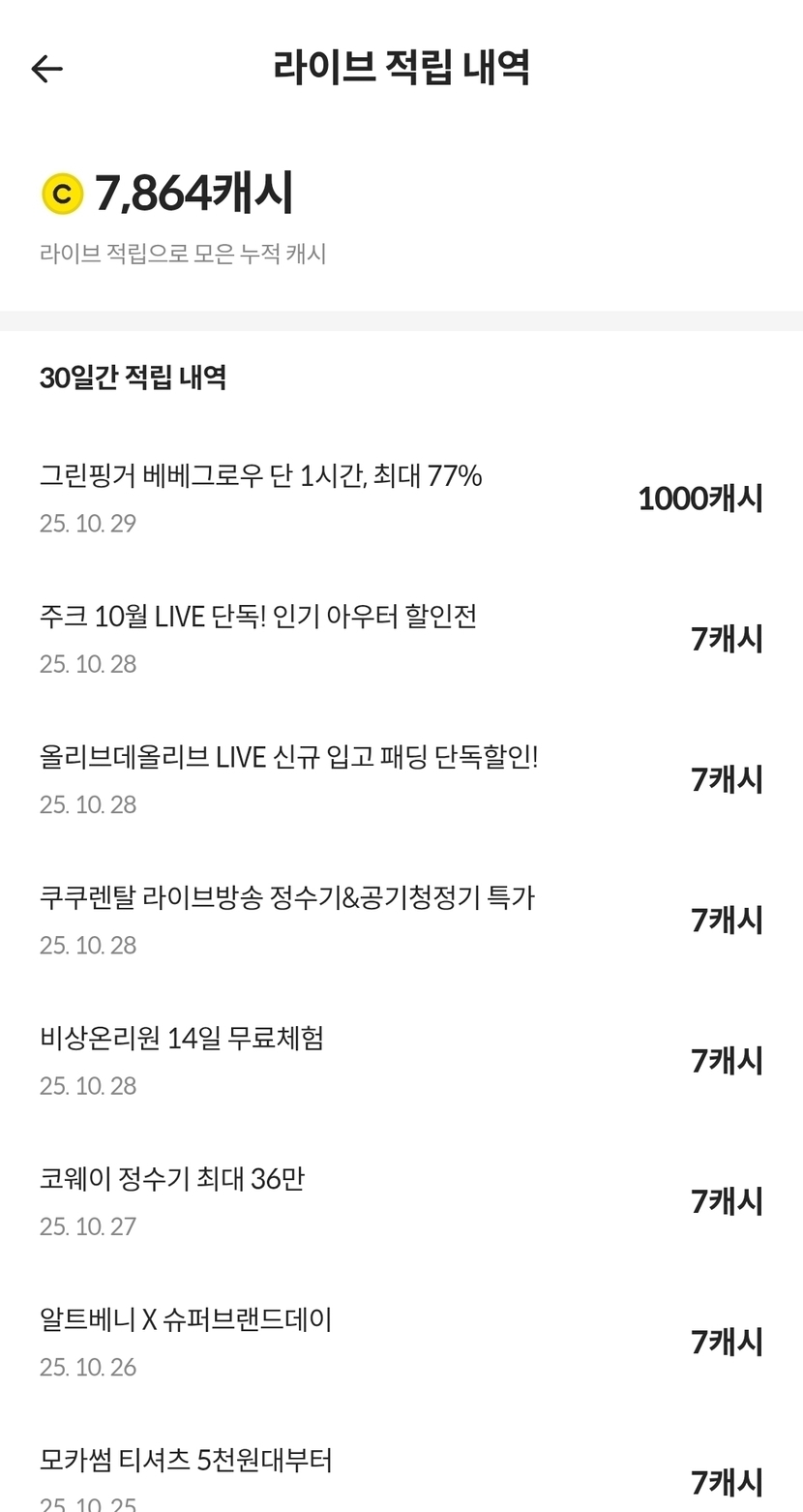 라이브 적립 1000원