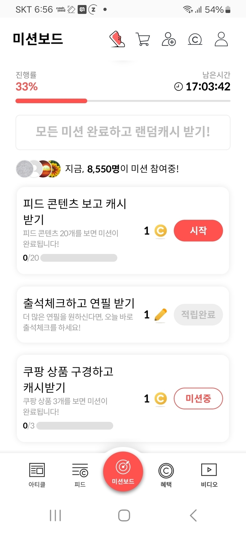 지금시각 07시56분 미션보드~미션 중 인증샷~~