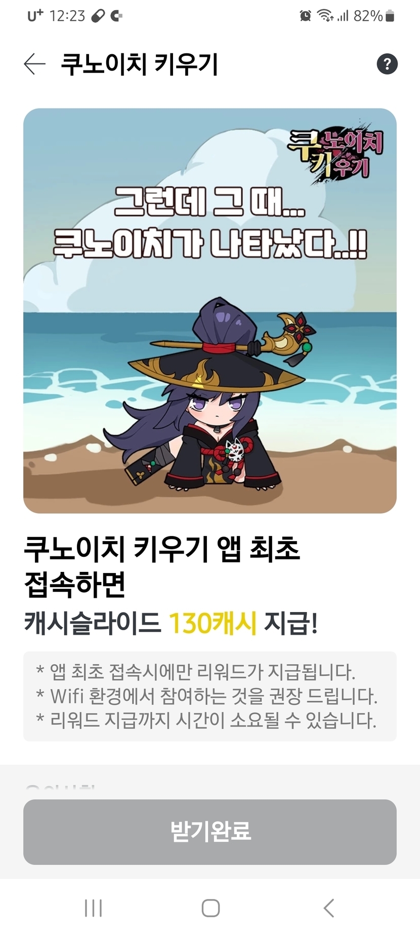 쿠노이치키우기. 앱 최초 접속하고 130캐시