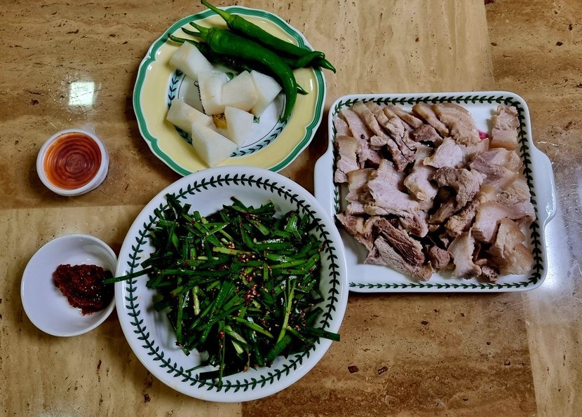 25.11.05 269 읽음 강된장양배추쌈&수육~ spring20 구독하기 20 23 콘텐츠의 수익 11 어제 저녁엔 강된장 양배추쌈오늘은 앞다리수육~강된장은 우렁이 듬뿍 넣고표고랑 양파로 식감 살렸더니애들도 야우지게 밥 한 공기씩 뚝딱하네요다른 반찬 필요 없어요오늘은 퇴근하자마자 주말에 사다놓은통앞다리살 바로 앉혀서50분 푹 삶았습니다수육이 사실 제일 쉬워요~부추 있어서 새콤 달콤 가니쉬로 해서오늘도 맛나게 잘 먹었습니다추운날 든든하게 맛난 거 많이 드시고건강 잘 챙기세요♡ 23 0 / 300 입력