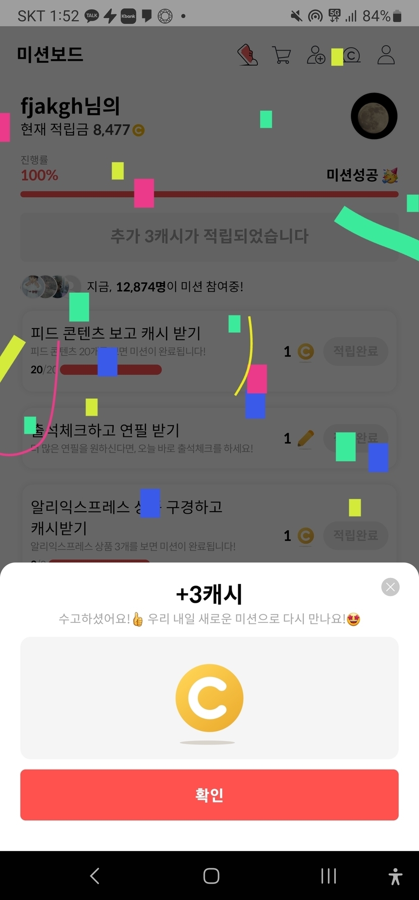 오늘 미션완료하고 3캐시네요ㅠㅠ