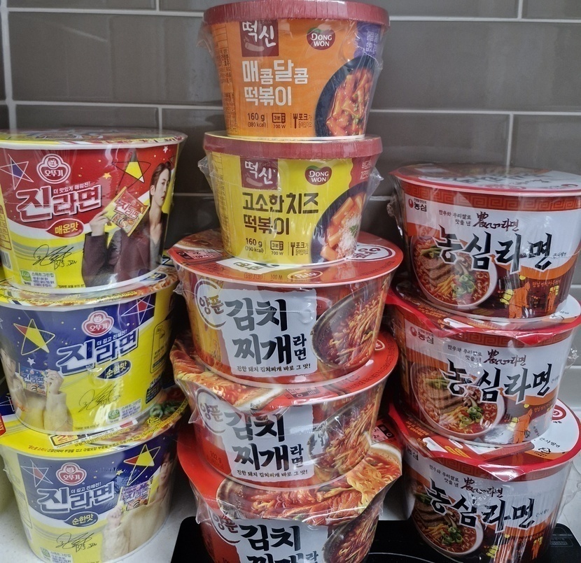 보냈어요. 사발면이랑 떡볶이는