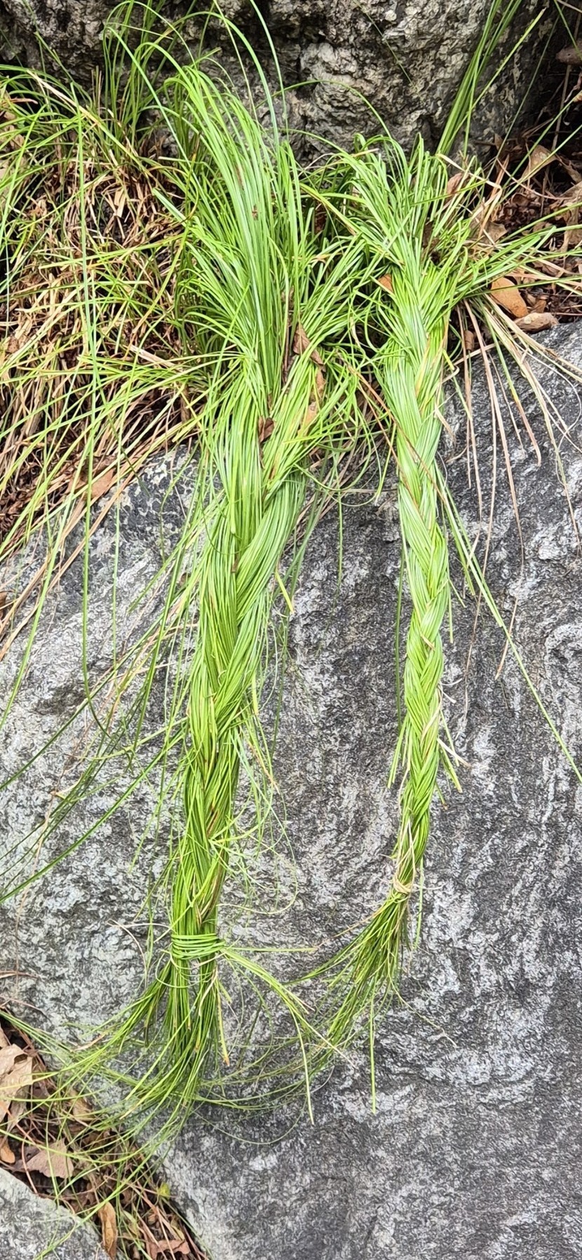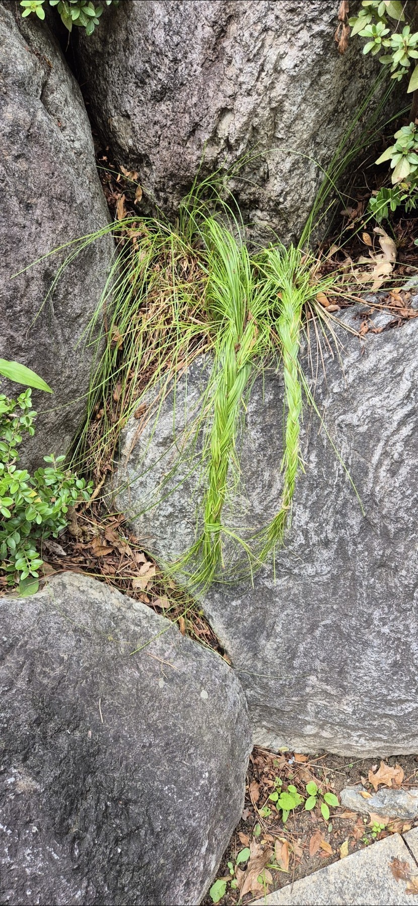 누군가 풀을 머리처럼 땋아놨네요