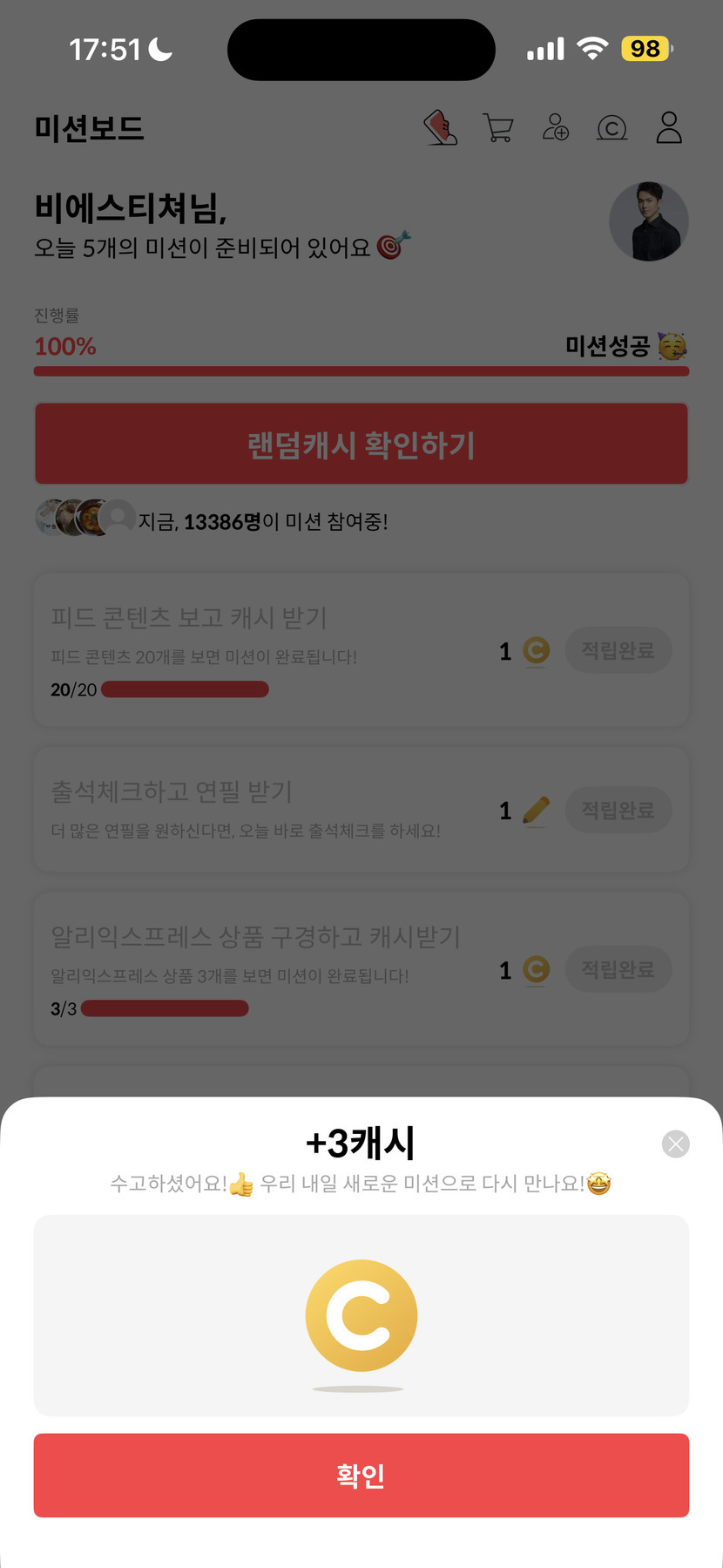 25.11.14 106 읽음 11월 14일 캐시피드 미션 완료 비에스티쳐 구독하기 6 9 콘텐츠의 수익 4 오늘은 그런대로 캐시가 나왔네요.계속 이렇게 꾸준히 나왔으면 좋겠습니다.날씨 추워지는데 건강 조심하시고 해피한 오후 보내세요:) 9 0 / 300 입력
