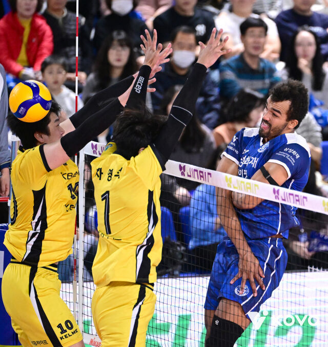KB손해보험은 15일 대전 충무체육관에서 열린 진에어 2025~2026 V-리그 남자부 2라운드 삼성화재와 경기서 세트스코어 3-1(15-25, 25-21, 25-22, 25-17)로 이겼다.