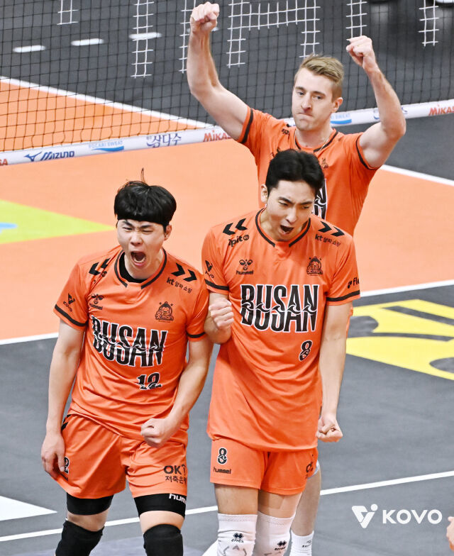 OK저축은행은 27일 오후 부산 강서실내체육관에서 열린 진에어 2025~2026 V-리그 2라운드 삼성화재와 홈경기에서 3-0(25-20, 25-22, 25-16) 승리의 기쁨을 누렸다.