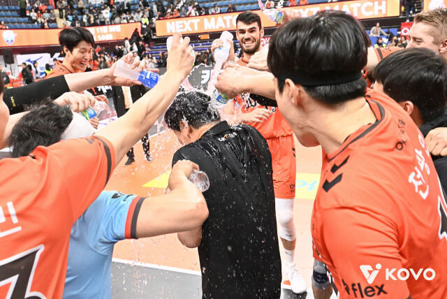 신 감독은 선수들의 물세례에도 웃었다. 그는 “부용찬, 전광인 등 다들 열심히 물을 뿌렸다”고 농담을 던지며 미소를 지었다. 이어 “날 선택해주신 최윤 구단주님에게 감사하게 생각한다. 그리고 우리 선수들과 코칭스태프, 사무국 직원들 덕분에 이뤄졌다. 감사하게 생각한다”며 소감을 전했다.