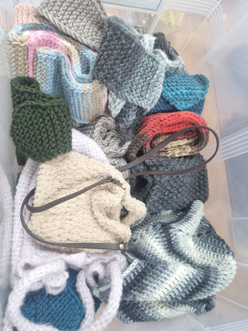 샘들이 뜨게질한 모자와 목도리들