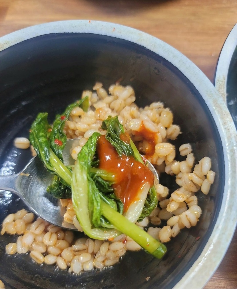 저녁으로 먹는 보리밥 입니다
