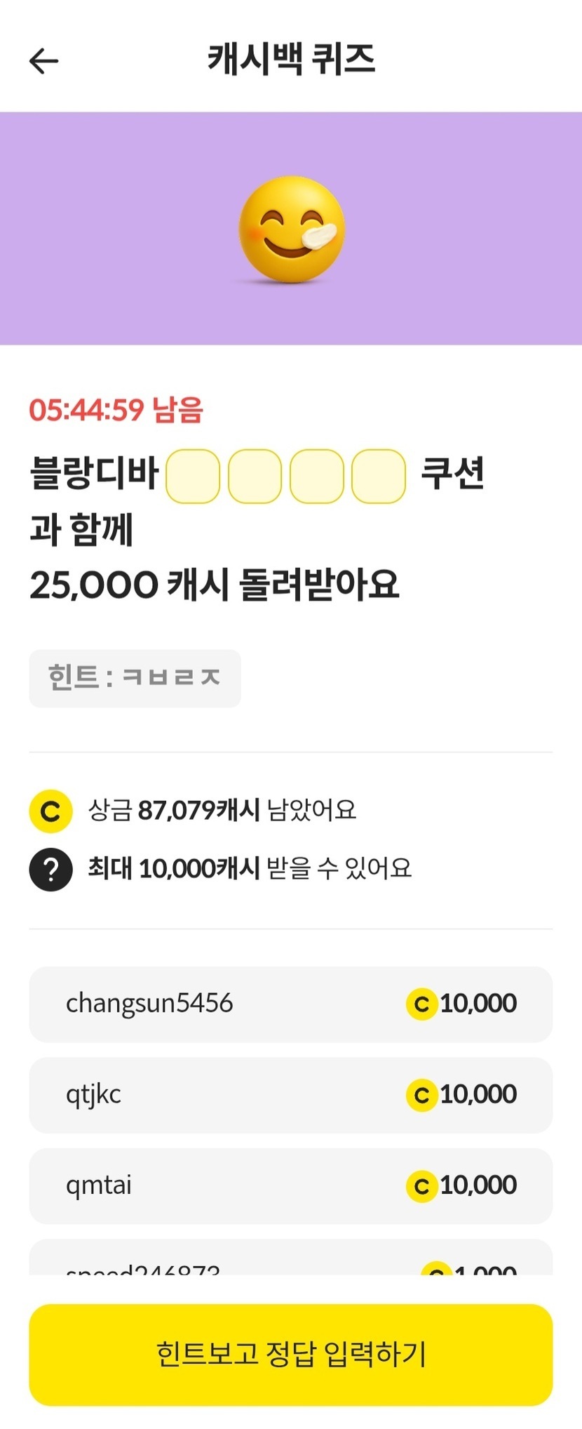 캐시백퀴즈 정답♡커버리지