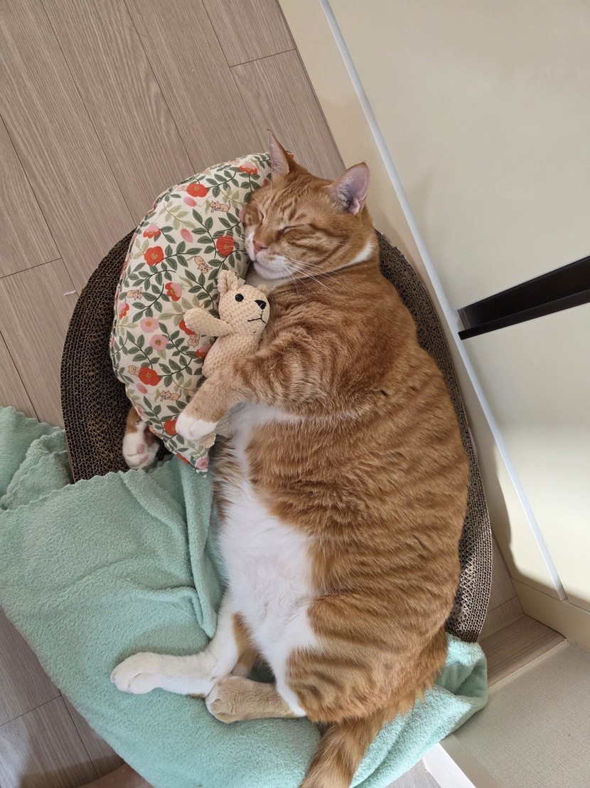 인형 꼭 껴안고 자는 노랑이