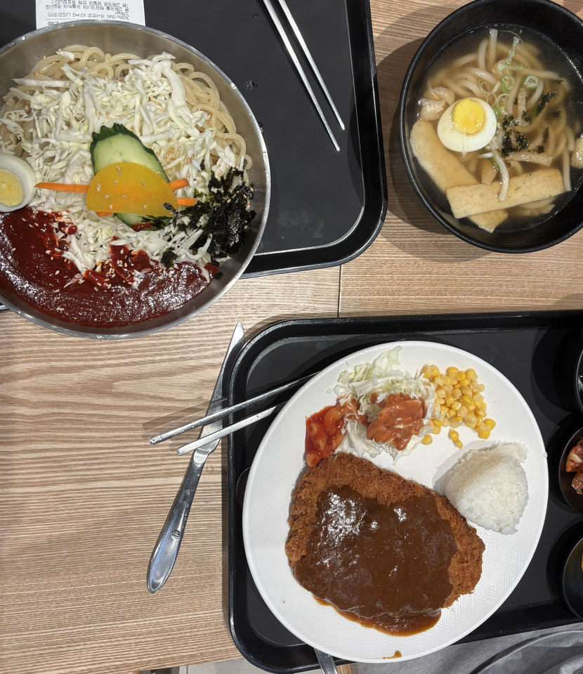 쫄면에 돈가스