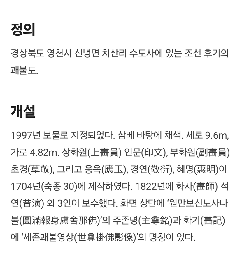 보물 1271호 수도사 노사나불 괘불탱