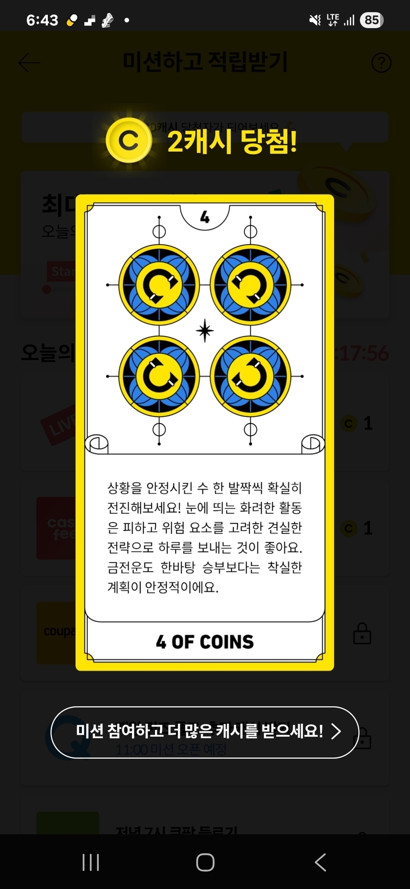 캐시슬라이드 오늘의 미션타로