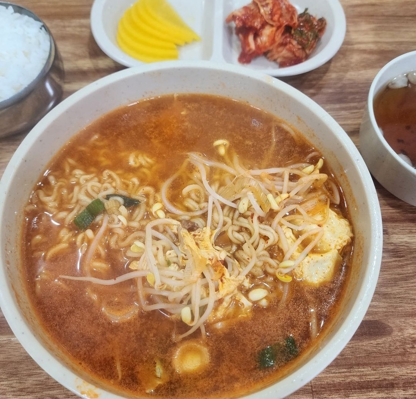 야근을 위한 저녁인 콩나물을 넣은 라면입니다