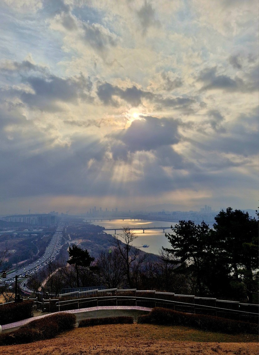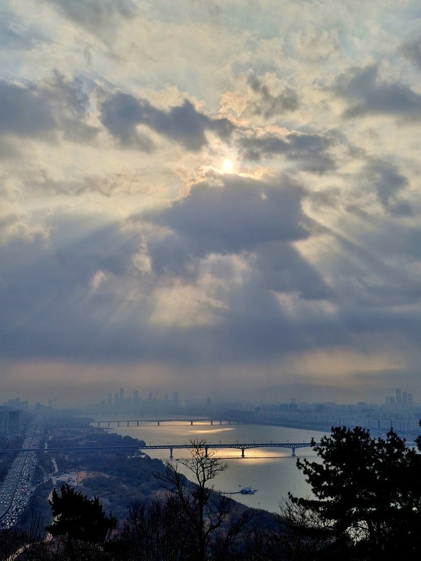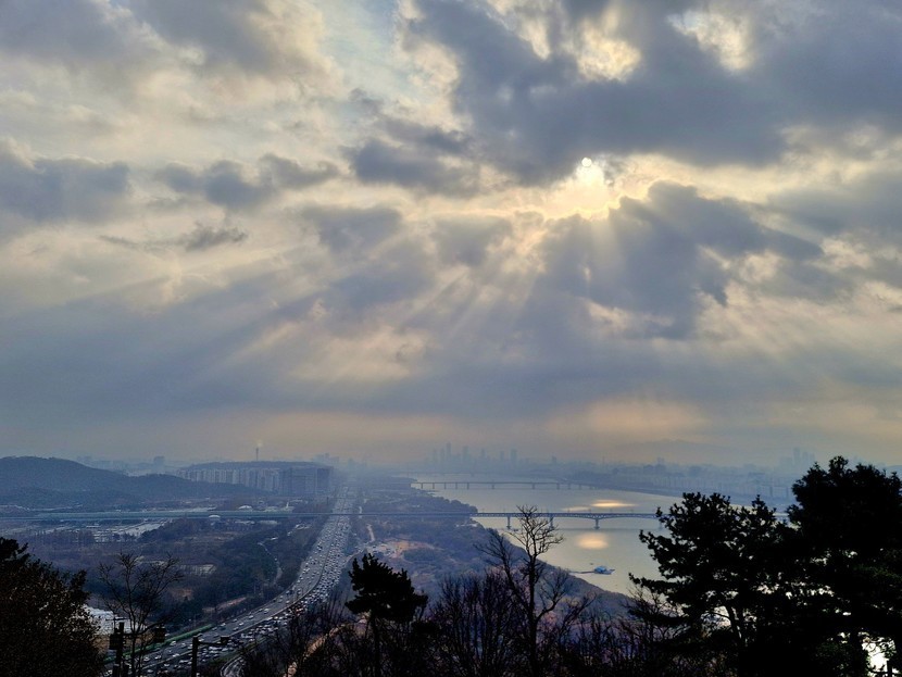 꼭대기에 오르니 보이는 한강 일출