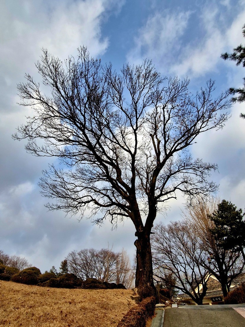 앞에 살구나무는 올 1월 내린 눈에