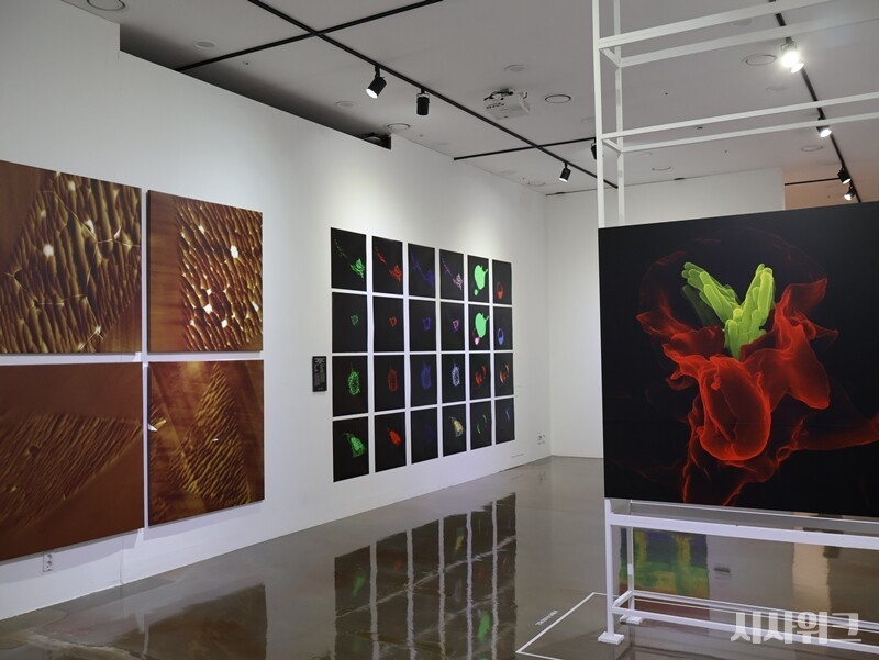 두 기관이 촬영한 미시 세계의 이미지는 서로 다른 연구 환경과 기술에서 출발했다. 하지만 그 결과물은 모두 ‘자연이 스스로의 구조를 어떻게 드러내는가’라는 같은 질문으로 이어진다. Cryo-EM(초저온투과전자현미경)으로 냉각된 단백질을 촬영한 이미지부터 시뮬레이션으로 재현한 우주의 흐름까지, 다양한 장면이 과학적 자료를 넘어 예술적 감각으로 확장된다. 그 순간 관람객은 과학을 이해하는 또 하나의 길, 즉 시각적 경험을 마주하게 된다.