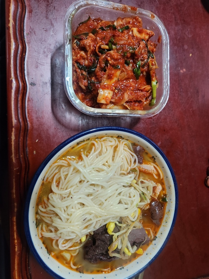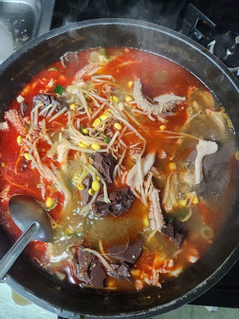 주말 점심은 선지 해장국에 국수 말아 먹어요!