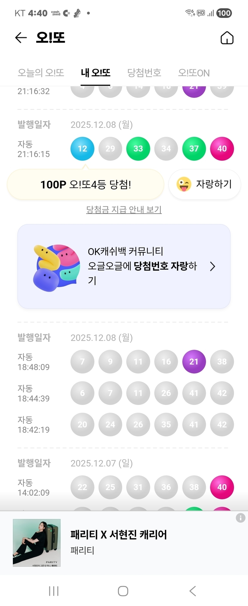 4등 100포인트 당첨됬네요
