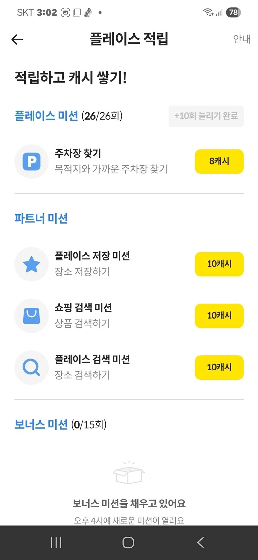 14시간 전 107 읽음 플레이스적립 성공 jnhm50 구독하기 21 22 콘텐츠의 수익 6 오늘은 플레이스적립이 있어서 적립했네요파트너 적립은 뭐가잘못인지 도무지 적립을 할수가없네요안내에서와같이 화면이 뜨질않으니 적립할 재간이 없는거죠포기하고 그냥 오늘처럼 플레이스적립이나 있으면 좋겄네요캐피님들 모두 화이팅요 22 0 / 300 입력