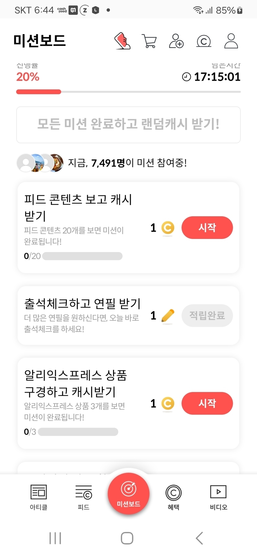 지금시각 06시45분 미션보드~미션 중 인증샷~~