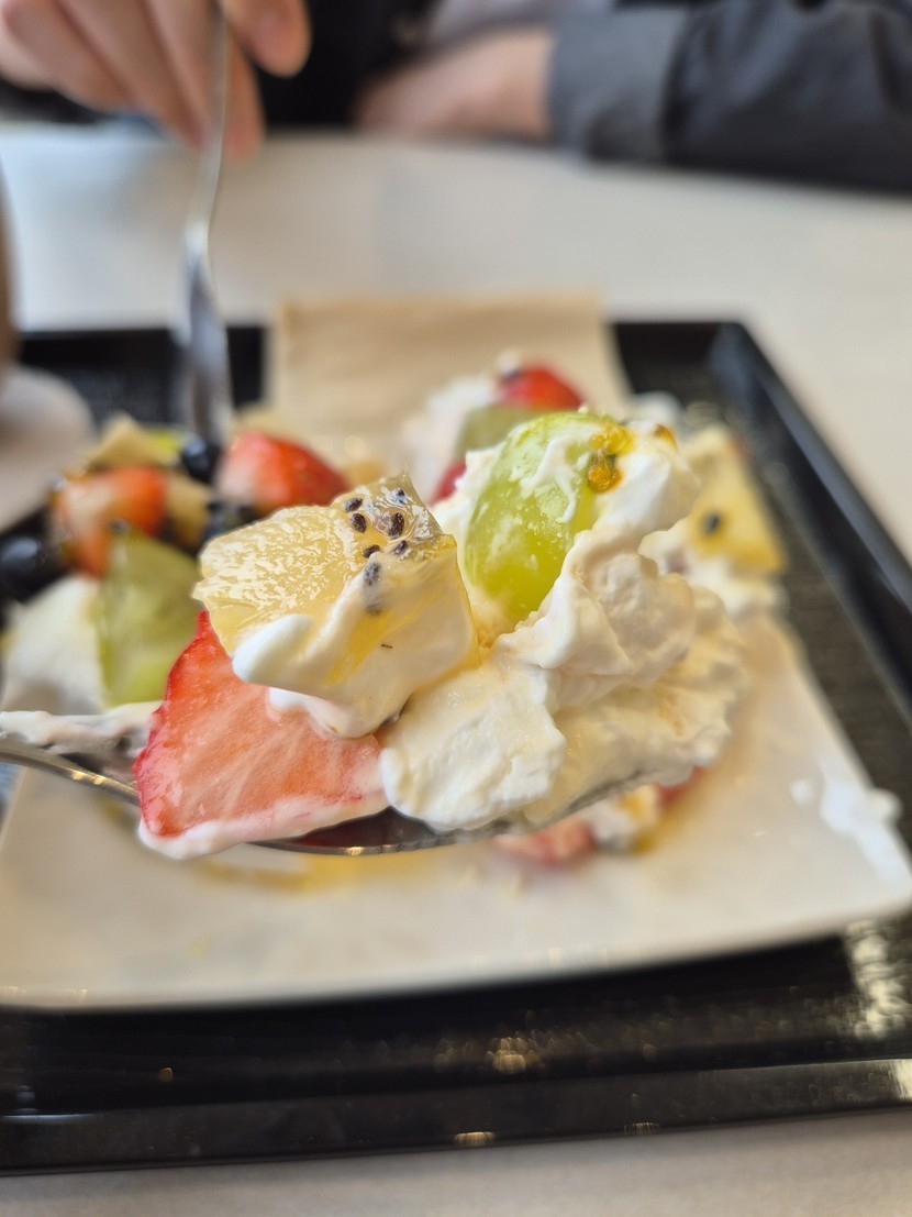 25.12.20 299 읽음 과일듬뿍 디저트와 커피 ☕️🫶 yeah0618 구독하기 7 7 콘텐츠의 수익 8 볼일이 있어 외출했는데 지나가다가 새로 생긴 카페를 봤어요 들어갔는데 파블로바라는 이름의 디저트가 있더라구요궁금해서 주문해봤는데 큰 머랭쿠키에 생크림과 과일이 토핑돼있었어요 달달하고 식감이 재밌어서 먹는 맛이 있었네요 ㅎㅎ 날이 좀 흐린 주말의 시작이지만 행복한 주말 보내시길 바랍니다 :) 7 0 / 300 입력