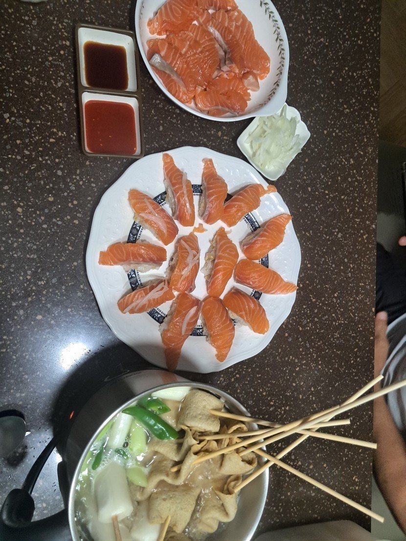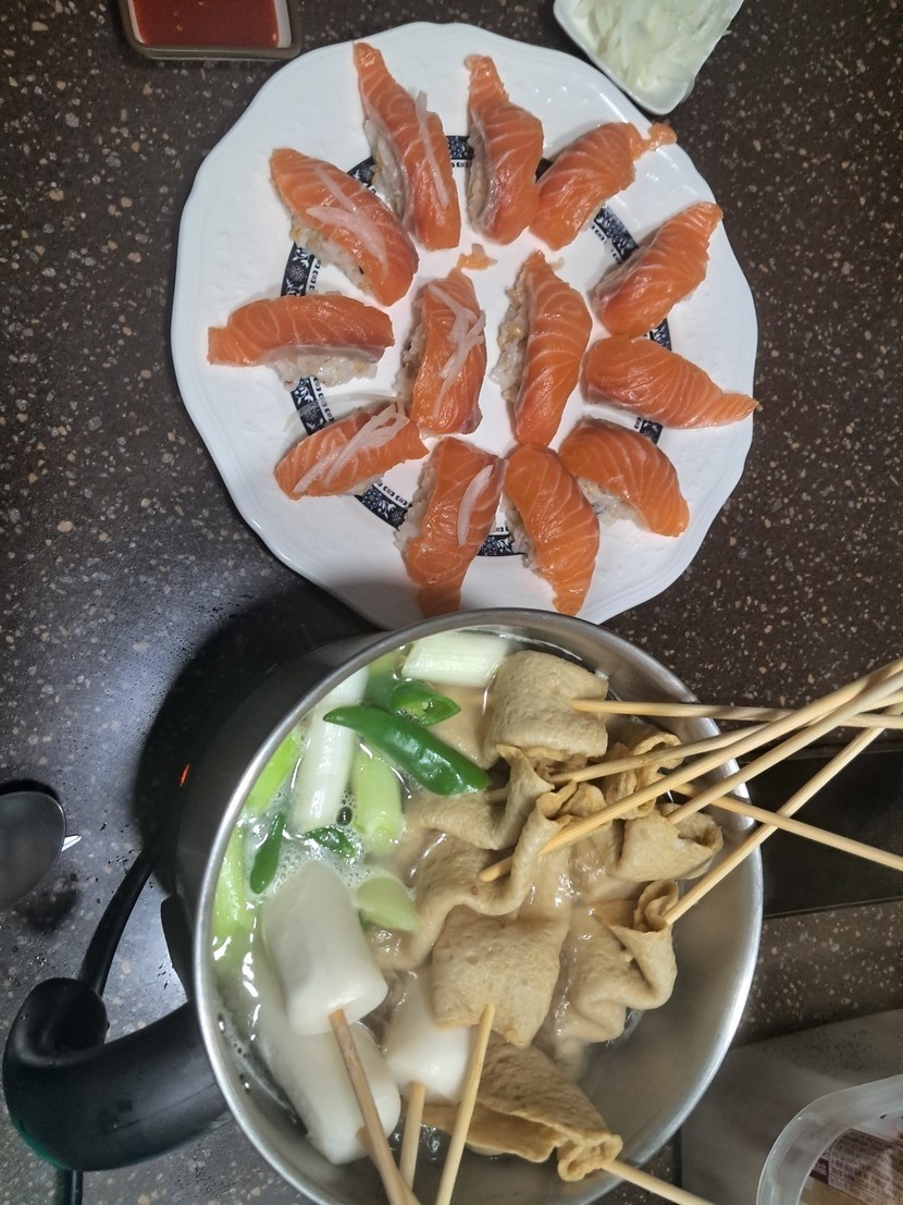 25.12.21 161 읽음 ♡연어초밥에 오뎅탕 맛나요♡ 쩡은1230 구독하기 3 6 콘텐츠의 수익 4 연어회가 먹고 싶어 연어를 득템해서 연어초밥도 만들고 오뎅탕과 먹으니 정말 맛나게 잘 먹었어요 오뎅탕에 떡꼬치도 아주 대만족~~♡ 6 0 / 300 입력
