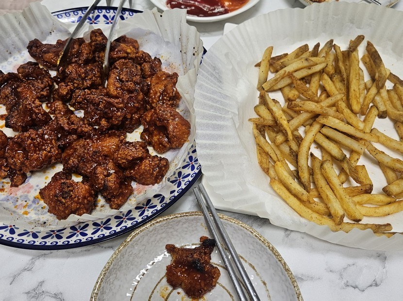25.12.23 320 읽음 양념닭강정 & 감튀 렌짱마미 구독하기 17 21 콘텐츠의 수익 13 식자재마트 가서 양념닭강정 과 감튀사와서. 에프에 구웠어용 200도 7분닭강정 200도. 10분. 감튀 앞뒤 돌려가며. 구웠어용 맛있어용~~양념닭강정 달달하니. 초딩입맛에도. 맛있을거 같네영~~드셔봐용~~ 21 0 / 300 입력