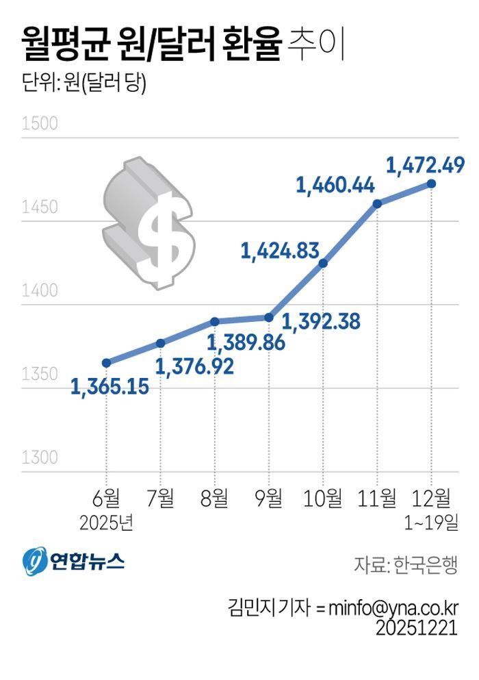 모두가 고통받는 고환율 상황이 지속되고 있는 가운데, 이재명 정부의 대책은 무엇인가. 만약 오는 12월 30일에 결정되는 '연말 종가 기준 환율'이 높게 잡히게 되면, 기업의 외화부채 부담이 커지고, 당연히 투자나 대출 규모 전반이 축소될 수밖에 없다. 그래서 연말에 환율을 안정시키는 것이 매우 중요한 일이나, 뾰족한 대책이 없어 보인다.