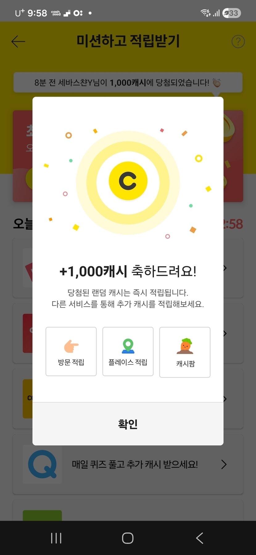 어제 늦은 저녁시간에 1000캐시 당첨!!! ㅎㅎ