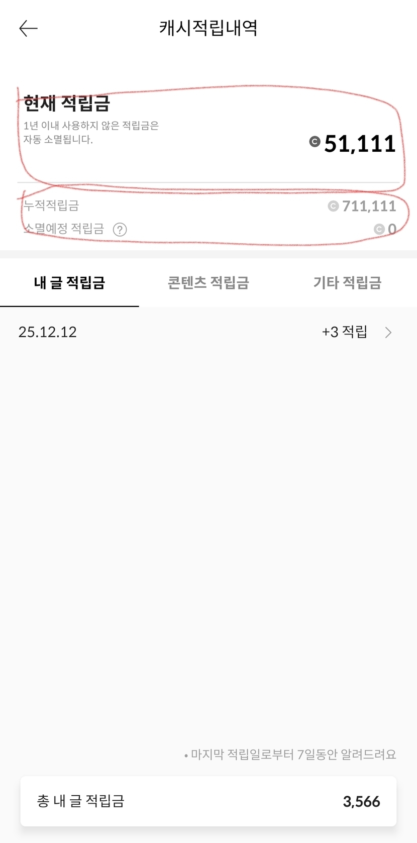누적 적립금 71만 1111원