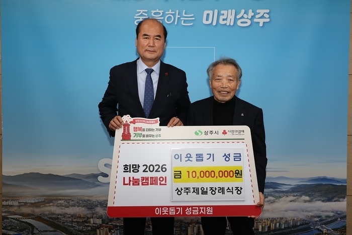 31일 상주시에 따르면 상주제일장례식장과 상주스틸·상주철강이 \'희망 2026 나눔 캠페인\'에 총 2000만 원의 성금을 기탁했다.
