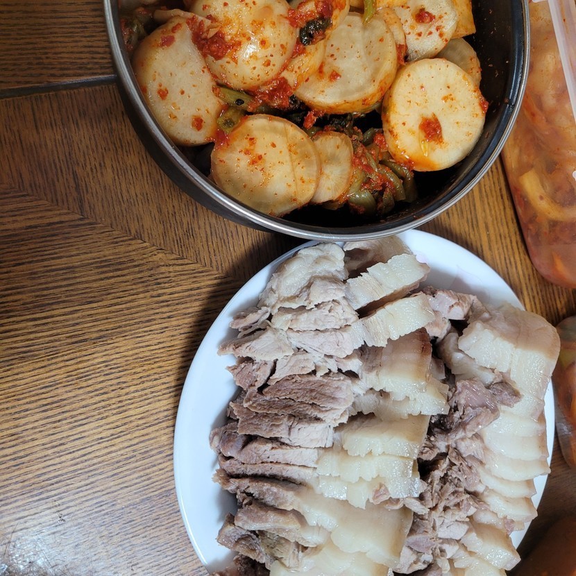 앞다리수육 알타리.김치 맛나게~😐😆👍
