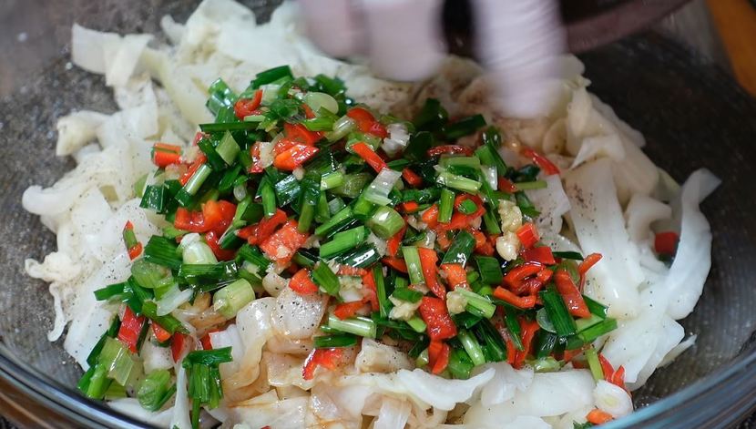양배추를 나물처럼 활용할 때 가장 중요한 건 불을 쓰지 않는다는 점이다. 익히지 않기 때문에 아삭한 식감이 살아 있고, 비타민과 식이섬유도 그대로 남는다. 여기에 부추와 쪽파를 더하면 향이 살아나고, 홍고추를 소량 넣어주면 색감과 개운함이 동시에 잡힌다. 평범한 채소 반찬 같지만, 한 젓가락 먹어보면 생각보다 손이 계속 간다.